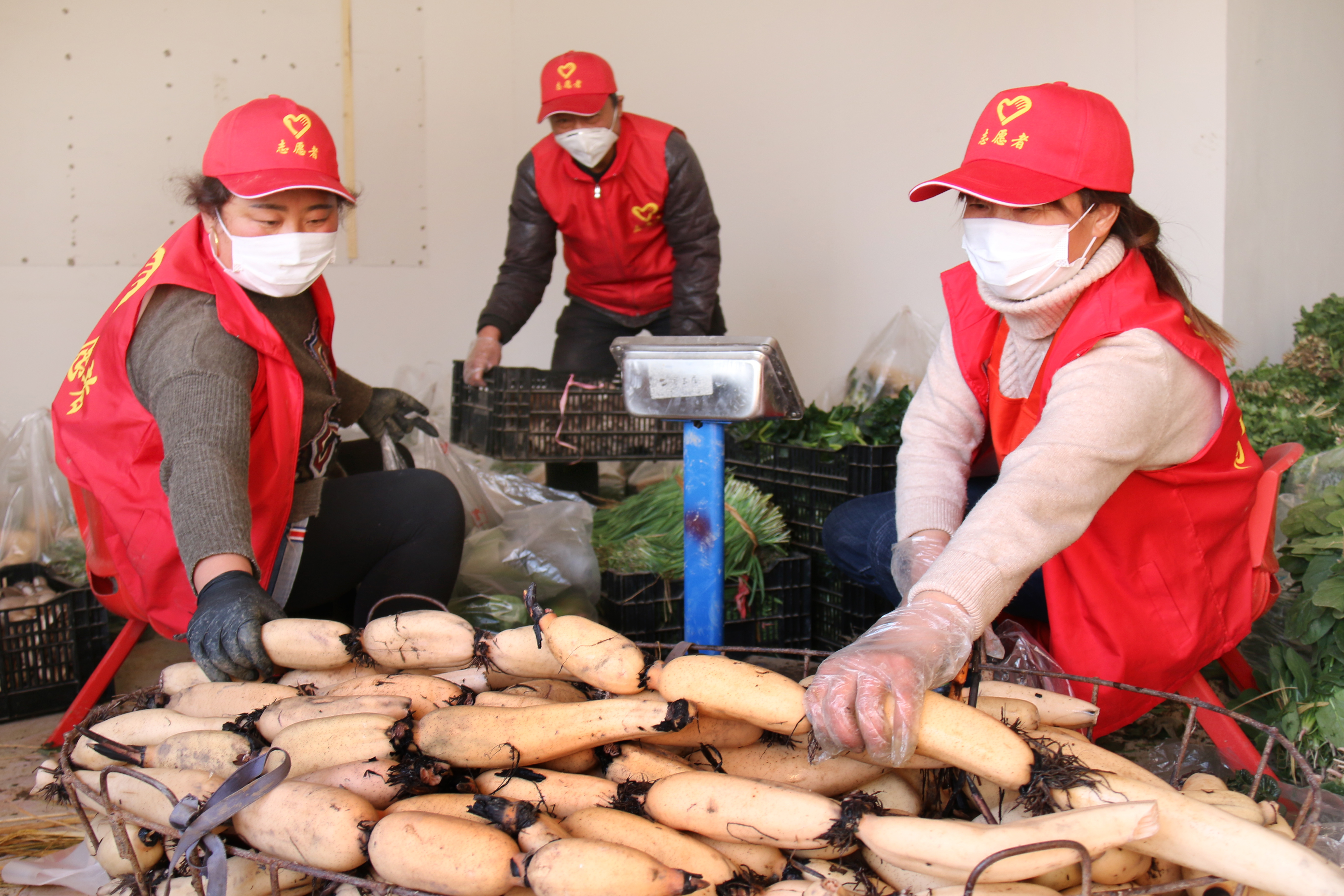 这个信息引起了灌云县妇联执委付媛的注意,她想着:疫情还在持续,一方面,满指望春节期间卖个好价钱的菜农望着满棚的蔬菜卖不出去;另一方面,各家各户春节存储的蔬菜也已经消耗的差不多了,各个家庭主妇们也急得直挠头。妇联的姐妹们除了线上线下及时发声动员引导广大家庭科学防护、捐款捐物支持一线防控外我们还可以做些什么呢?这不正是我们妇联应尽的职责吗?上不了一线,去不了武汉,帮广大留守妇女把菜卖了,又解决了城里各个“煮妇”的无米之炊岂不两全其美 。