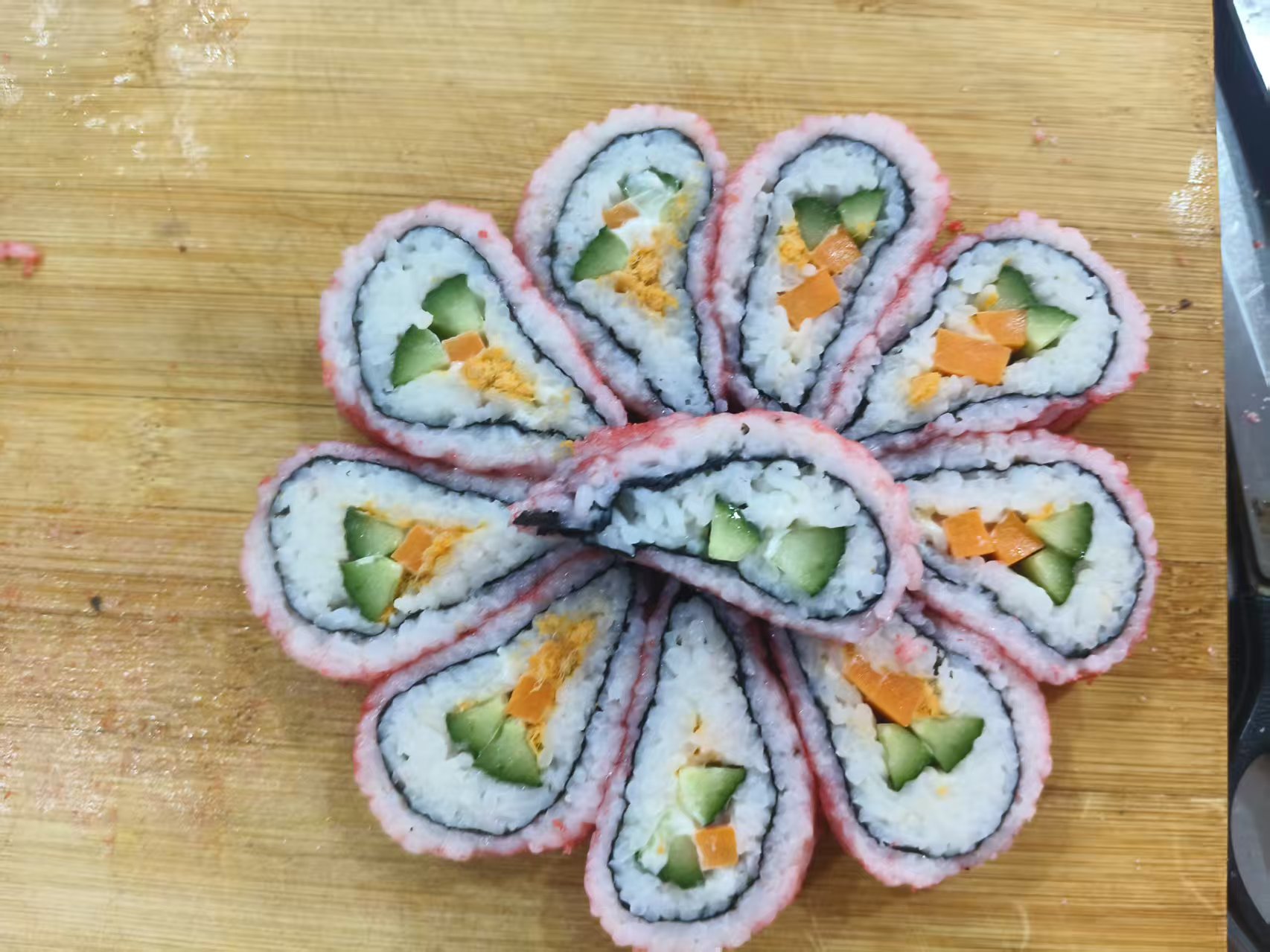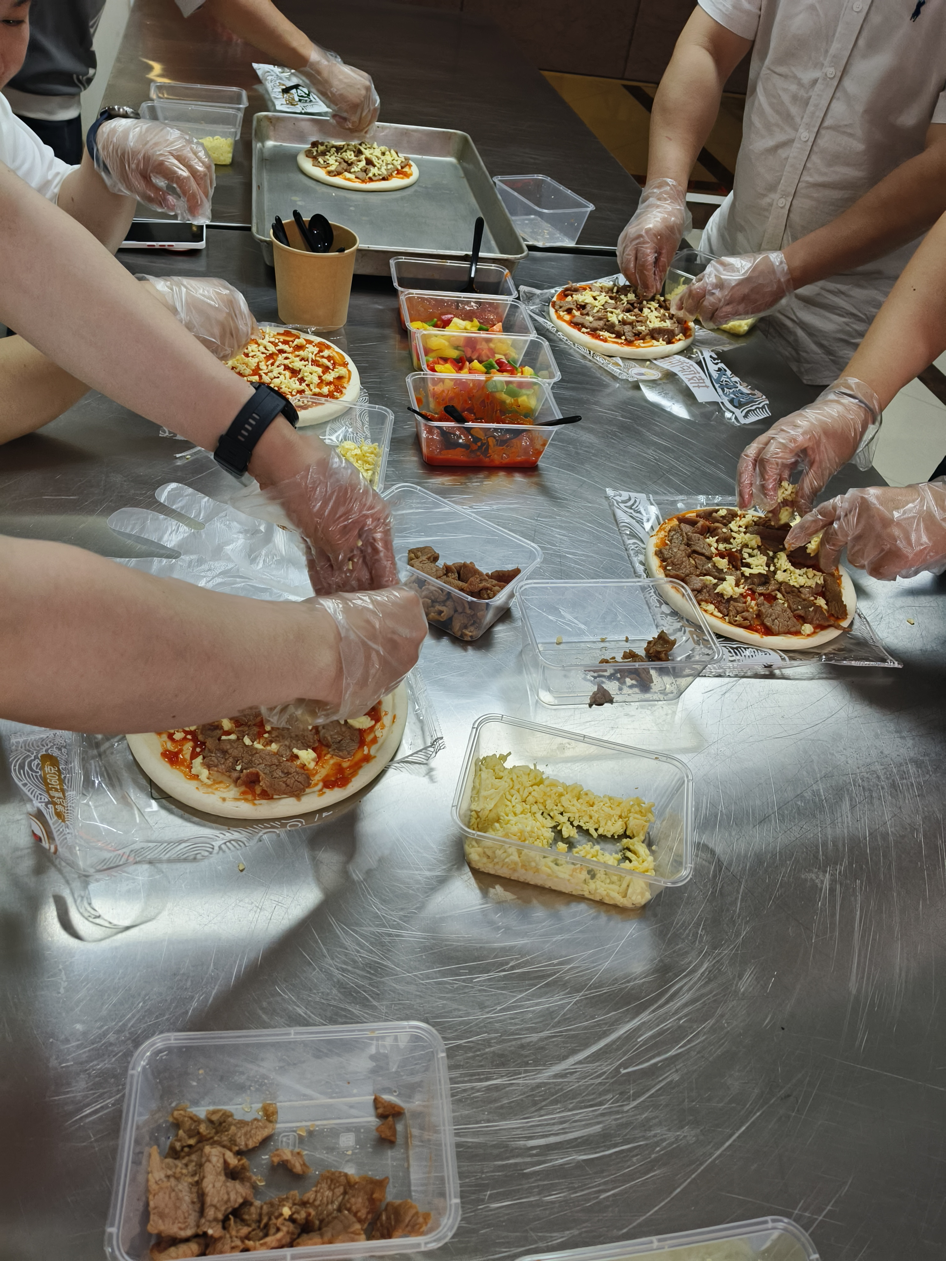 兴趣沙龙美食课分别于每周五晚六点半举行。我们学习了制作樱花寿司、牛肉披萨、培根汉堡,老师耐心讲解每一个细节。原本略显紧张的学员们们,在香气弥漫的氛围中逐渐放松,小组内分工协作分发食材、时不时交流着生活趣事,操作台上的笑声此起彼伏。最终,每个人都成功完成了专属手作,看着自己亲手制作的颜值与美味兼具的美食,脸上满是成就感。